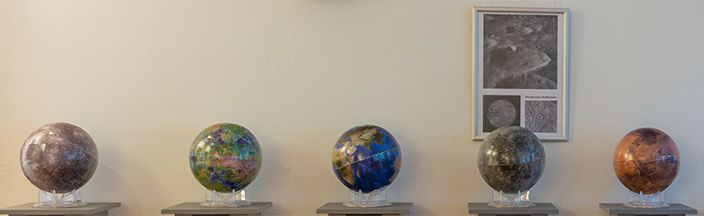 Reisen Sie mit der maßstäblichen Lichtgeschwindigkeit, verfolgen Sie unseren Lichtstrahl durch das Sonnensystem und entdecken Sie unsere kosmische Heimat. Von der Sonne aus geht es Richtung Neptun. Unterwegs finden Sie Steckbriefe und Globen zu den 8 Planeten des Sonnensystems.