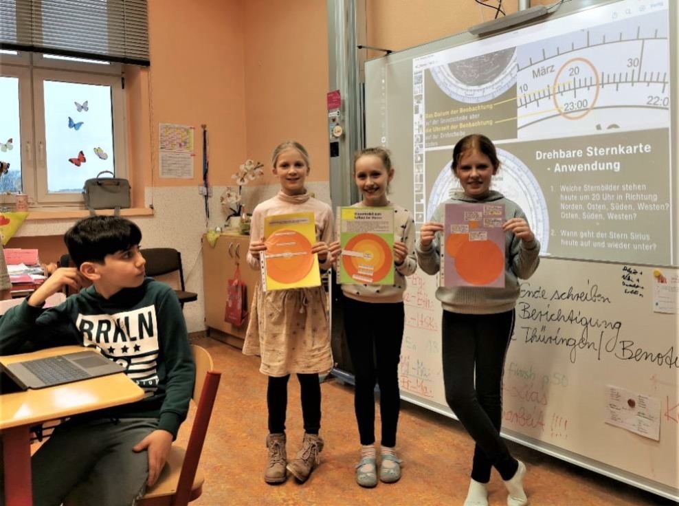 Im Rahmen des Programms „Astro-MINT“ fand von November 2024 bis Juni 2025 ein inspirierendes Projekt mit einer vierten Grundschulklasse aus Sonneberg in Kooperation mit dem Astronomiemuseum der Sternwarte Sonneberg statt. Unter dem Titel „Sterne über Sonneberg“ erhielten 15 Kinder auf anschauliche und kreative Weise Einblicke in die faszinierende Welt der Astronomie.